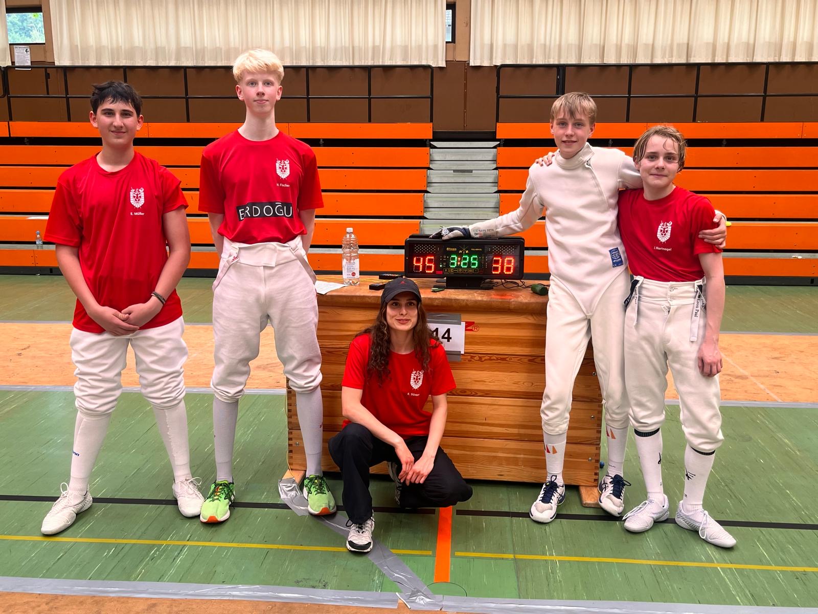 In Waldkirch fand dieses Jahr die Deutsche Meisterschaft der U15 Degen statt. Gestartet wurde im Einzel und in der Mannschaft. Unsere Sportler zeigten eine gute Leistung, welche in der Mannschaft auch mit einer Silbermedaille belohnt wurde. Nachfolgend sind die Platzierungen aufgeführt.